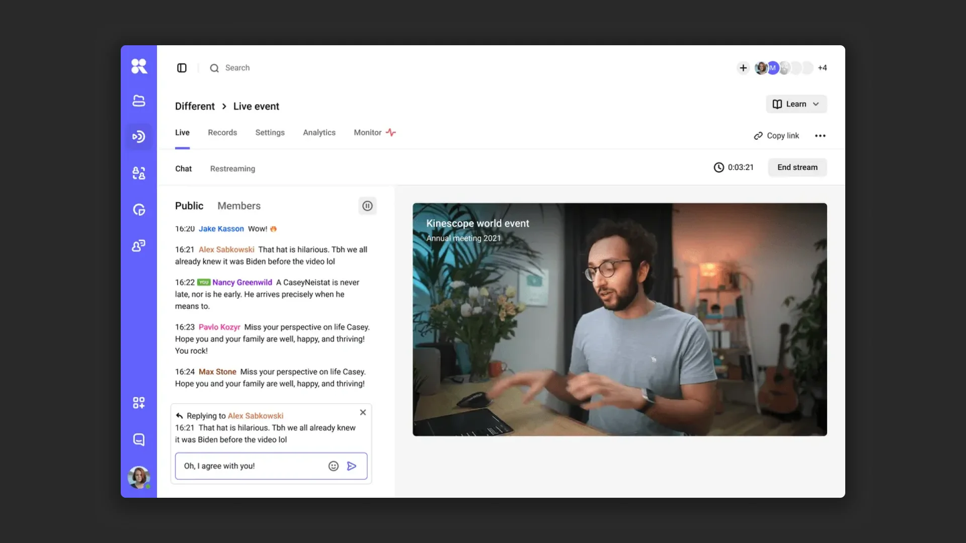 Платформа поддерживает трансляции с возможностью записи, рестриминга, аналитики просмотров, управления доступом и встраивания на сайт вместе с чатом. Это то, что нужно для вебинаров, лекций и онлайн-мероприятий.